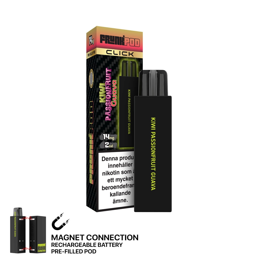 Påfylld pod med smak av Frunks nykomling kiwi, passionsfrukt och guava. Denna köpes när vätskan från start kit har tagit slut. Bara klicka in och fortsätta puffa!
