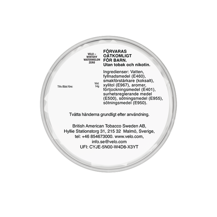 Hem Hel vit snus Velo Wintery Watermelon Slim – Zero Nicotine